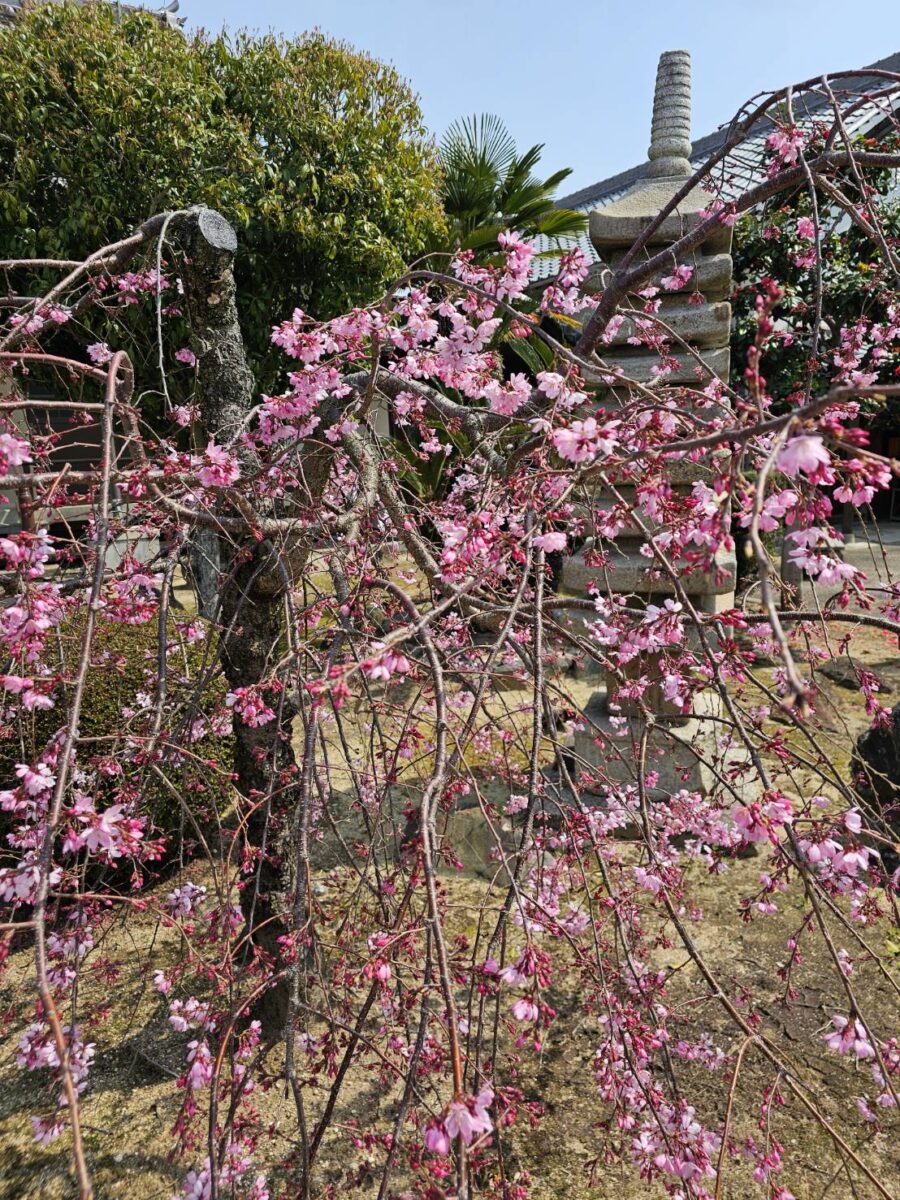 本堂前の庭園です。元享2年(1322年)の銘が彫られた、九重塔が聳え立っております。